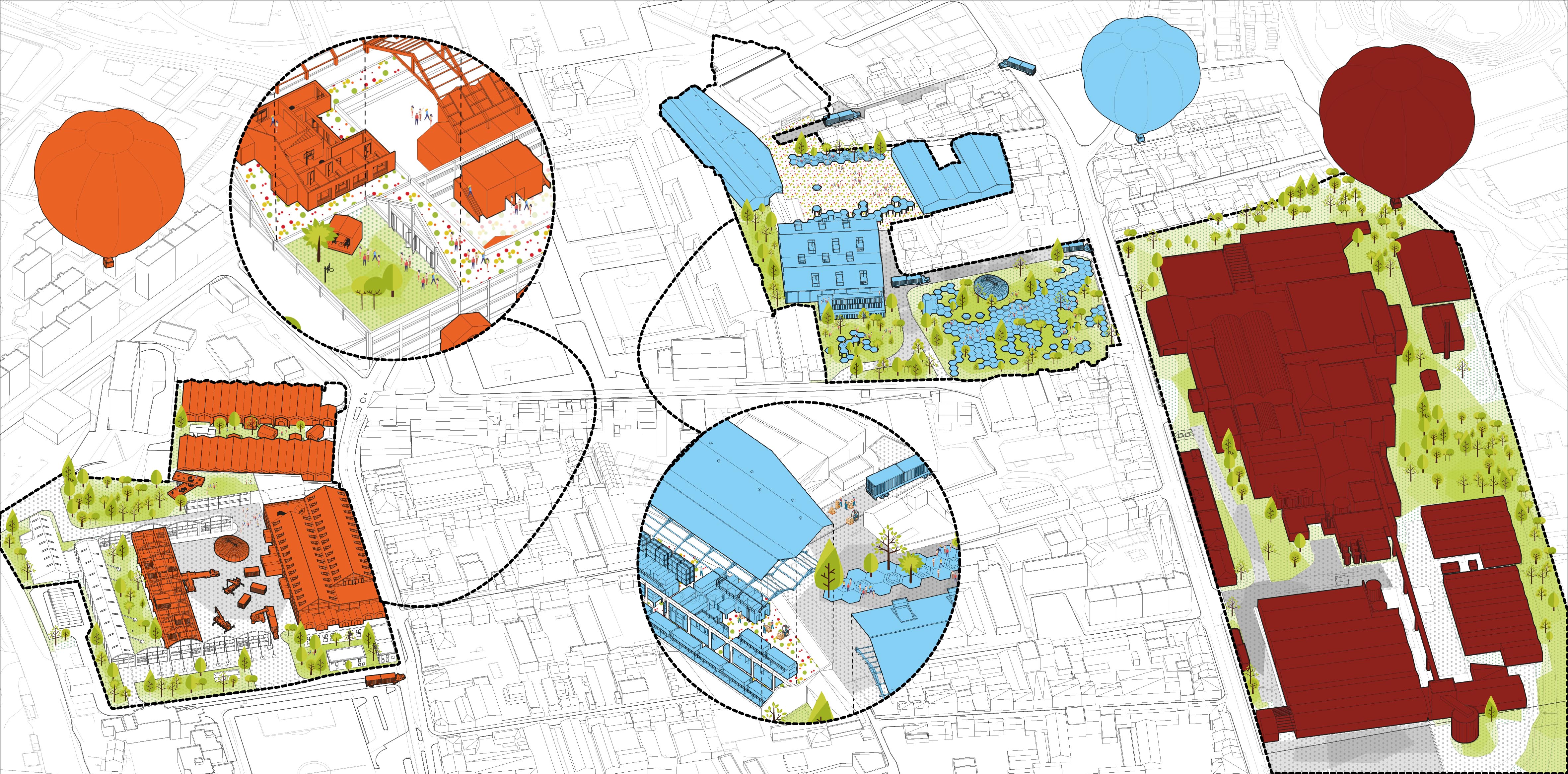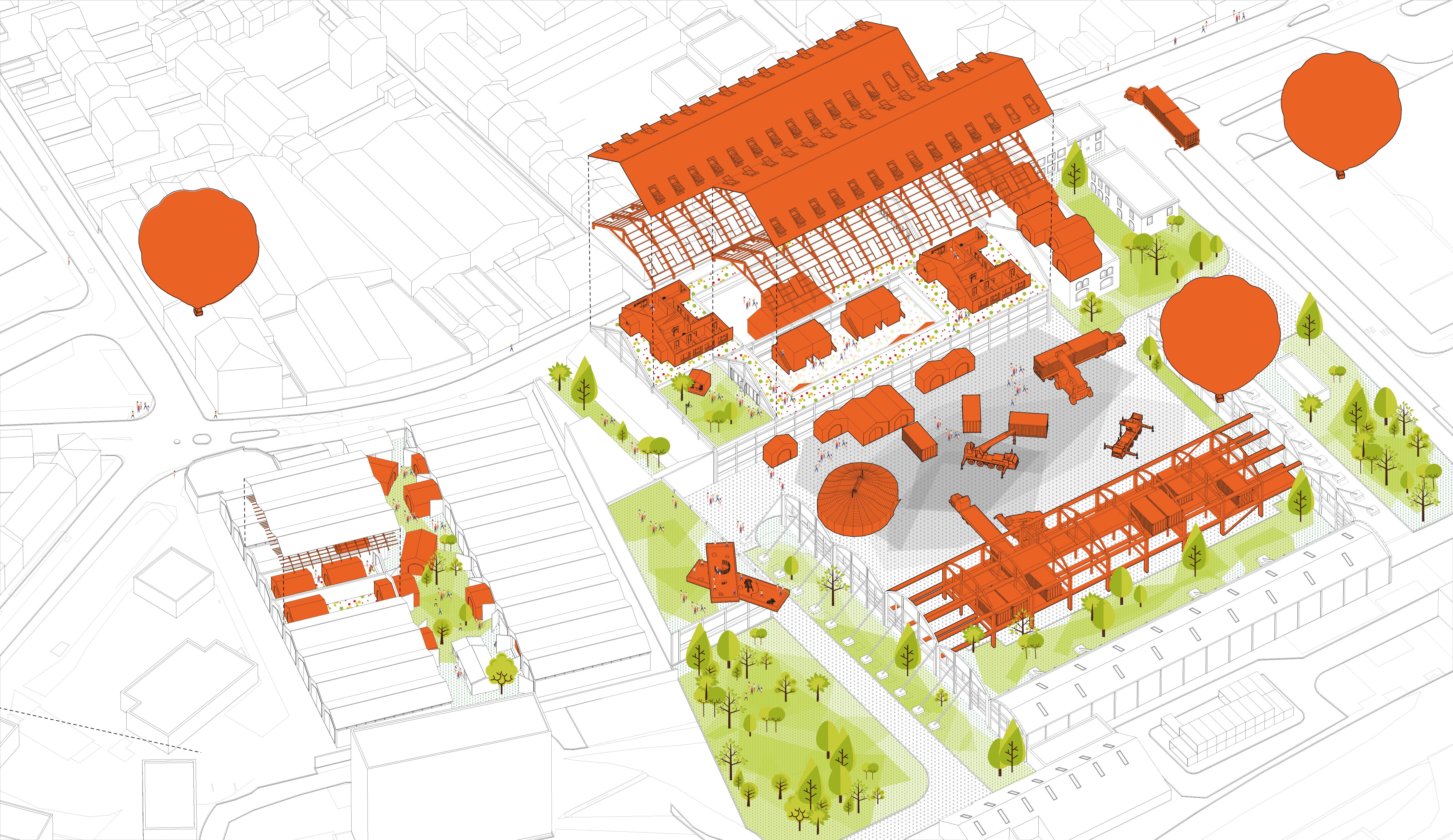 Ce bouturage s’implantera sur les enclaves industrielles délaissées et les interstices résiduels des trois sites de projet. Il prendra la forme de fragments de paysage, d’architecture, d’éléments industriels, aquatiques ou minéraux. Par petites touches, les interventions permettront d’enraciner et de faire grandir l’activité productive au coeur du quartier.