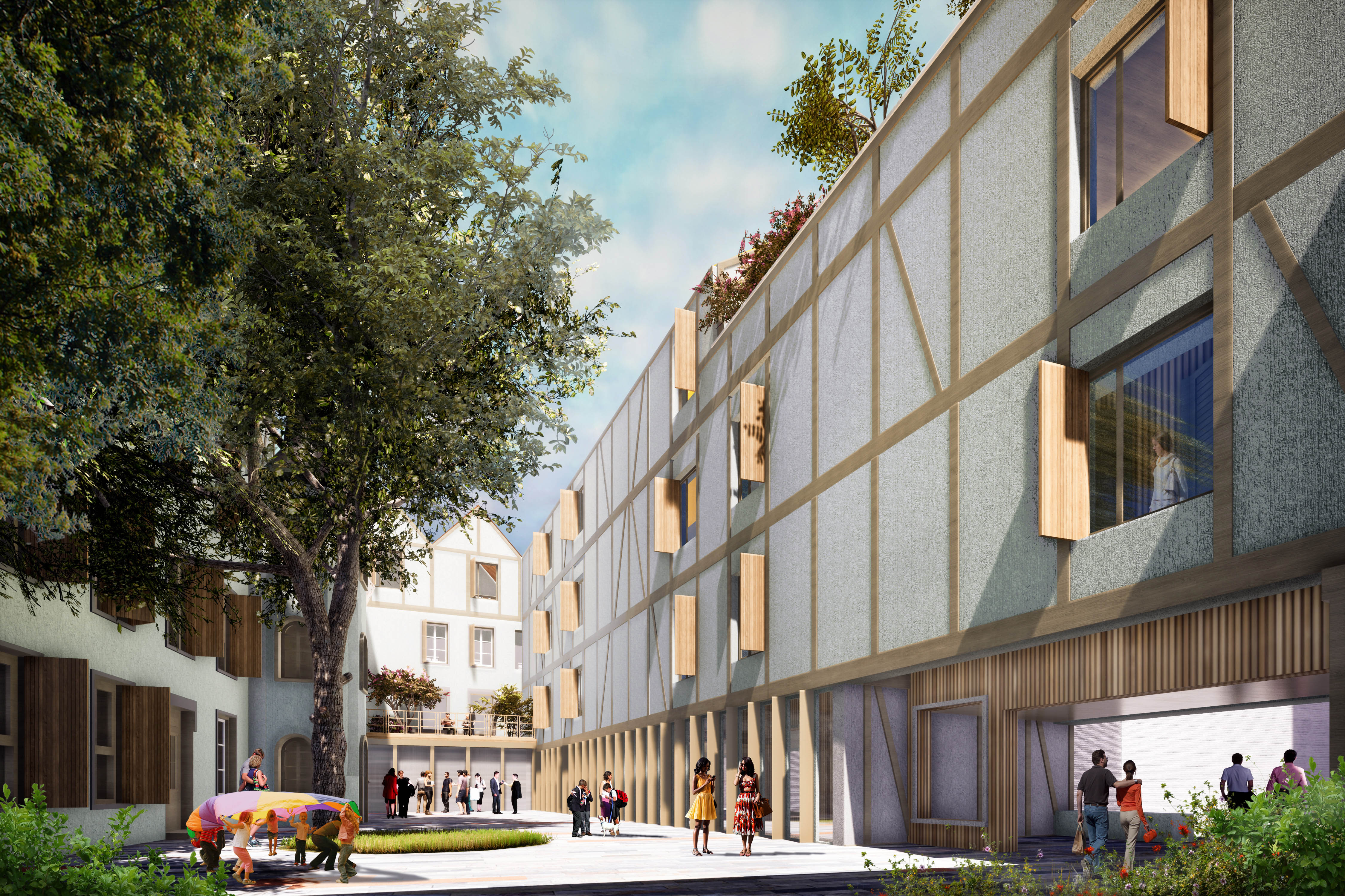 La volonté d’une technique locale et résiliente a été intégrée à la conception architecturale. Ainsi les façades pré-construites seront remplies de chaux comme dans l’architecture traditionnelle. Ces méthodes et techniques locales seront proposées à l’apprentissage aux jeunes du foyer de Notre-Dame afin de véhiculer les valeurs de l’architecture traditionnelle. A la construction, les détails sont issus su savoir faire avec la mise en oeuvre de l’étanchéité à l’eau des éléments structurels à l’aide d’application d’huile de lin croisé en deux couches. La chaud et le torchis seront la base de remplissage des éléments de façade, posé sur des rangs de roseaux croisés, assurant également la respiration naturelle de la façade.